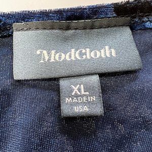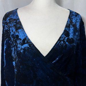 Like New MODCLOTH Blue & Black Crushed Velvet V-Neck Bodysuit in Floral Print XL