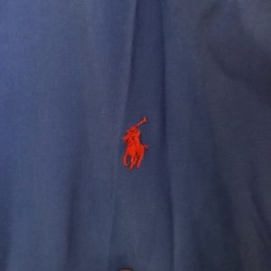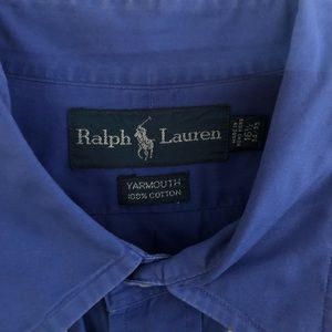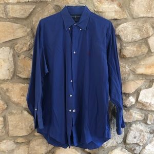 Like new men’s dress shirt by Ralph Lauren. Color is cobalt blue; 100% Cotton. Size: 16 1/2.