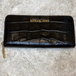 Like New Michael Kors Black Croc Embossed Zip Wallet