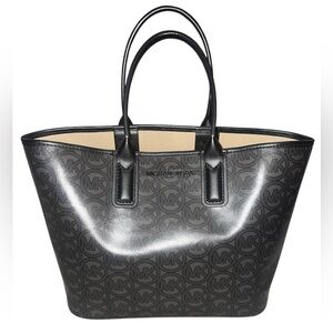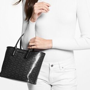Like New Michael Kors Jodie Small Logo Jacquard Tote Bag Black Gray Neutral