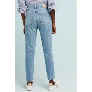 Anthropologie mih jeans mimi high waisted embroidered knee jeans in shan light wash.