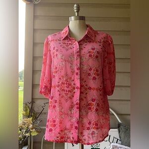 Like New (No Brand) Floral Pink Lightweight Women's Top | Size L