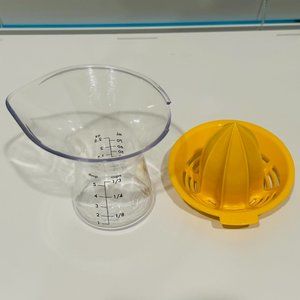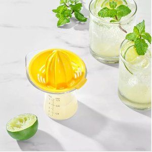 π The OXO SoftWorks Small Citrus Juicer is perfect for juicing lemons, limes, or oranges for all your baking needs! The unique reamer design makes juicing efficient and easy, while the built in strainer catches seeds and pulp. The compact container features convenient measurement markings so you can follow your favorite recipe and a spout for drip-free pouring to minimize messes. The Small Citrus Juicer comes apart for easy cleaning.