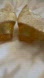 Shoes are "jellies" with sparkles and cut-out details along the side. Features include a jeweled bow at the toe, and a slightly raised heel.