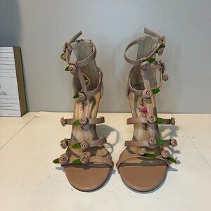 Like New Penny Loves Kenny T-Strappy rose bud design heels, Size 7.5M