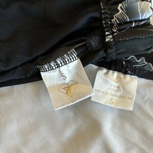 Gorgeous print, but I’m in the process of downsizing my pole collection. The top runs small (fits size 2-4), but fits me. Shorts run true to size (size 4). Like new, excellent used condition. Minor wrinkling due to storing.
