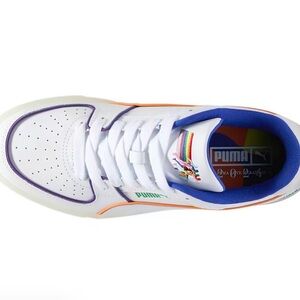 Like new, I barely wore them because apparently pumas run a little small. I normally wear a size men’s 10, but my big toe is barely grazing the front of the shoe and it’s bothering me enough that I decided to just buy a larger pair. I would recommend it them if you normally wear closer to a men’s 9.5, or if 10s usually run a little large for you. Puma sneakers featuring a white base with vibrant color accents. Bold and stylish design. The design of the shoes is so fun and I’ve gotten multiple compliments! I only wish they were true to size.