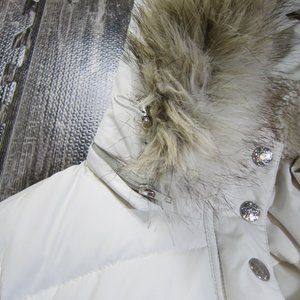 Like New Quilted Women's Insulated Long Coat w/zip removeable faux fur hood. Micro quilting detailing, open entry pockets, adjustable drawcord waist.