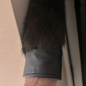 Beautiful black and brown leather and faux fur cost. Worn only twice. Waist is about 33 inches around. Coat is 37 inches long It has a button at the waist so a fitted style . Real leather panels at sides waistband and sleeves