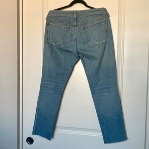 Like New Rag and Bone Dre Low-Rise Ankle Slim Boyfriend Jeans in Medium-Light Blue denim. It is size 27. There are rips over the knees and it has unfinished ends. The inseam length from crotch to bottom of the legs is 26.5 inches. These are in excellent like-new condition. Rag and Bone jeans are always very soft and comfortable. Feel free to purchase as is or make an offer. No trades please. Thanks!