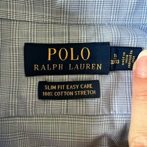 Like New Ralph Lauren Blue Plaid Print Button Up Shirt Sz 16 Neck 32/33