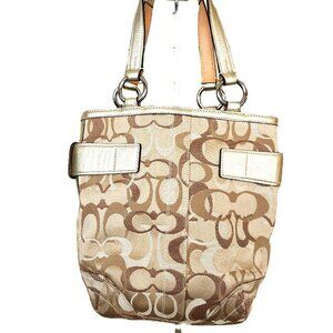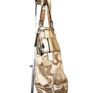Like New Rare Coach Optic Metallic Gold & Tan Satchel Bag Handbag Purse