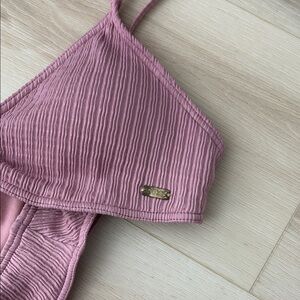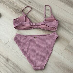 Roxy ribbed mid rise bikini set in mauve muted pink