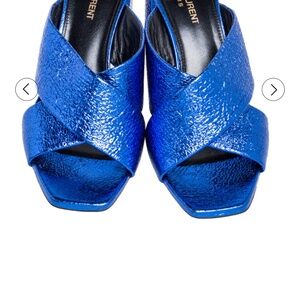 Like New Saint Laurent Blue Leather LouLou Slide Sandals Size 39