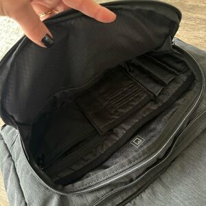 Like new condition! Adjustable strap. Very secure. Back strap to place over suitcase handle.
