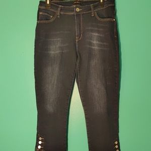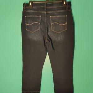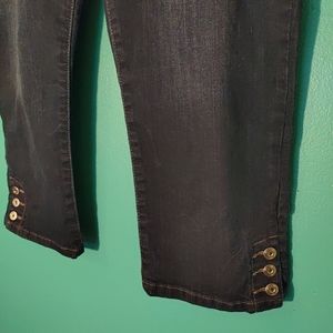 Lee, Modern Series, midrise fit, dark, capri, button ankle, belt loops intact, 4 pockets.