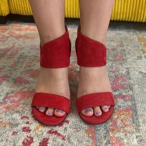 Like New Stuart Weitzman Red Suede & Leather Heels for Women