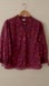 Chic burgundy blouse with floral design. Features a button-down front and gathered sleeves.