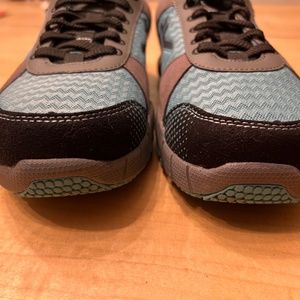 Super cute Kuru sneakers made for people with high arches (supination). They have only been worn twice (once to try on). They are a bright “glacial slate” which appears like a dark mint or a light teal with accents of gray and black and would be a benefit to any wardrobe! They are clean (look brand new) and are 100% undamaged with 0 flaws or dirt (one of the shoelaces has a pull in it pictured). Casual enough to wear daily, structured so not flimsy material, and they have a wide toe box with lots of wiggle room.