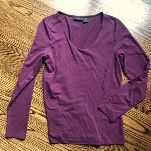 Tahari Scoop Neck Long Sleeve Knit Stretchy Fitted Shirt. Color: Wine/Plum, Size: Medium. Double layered front. Excellent quality. 95% cotton, 5% spandex. Like new condition. Washed but never worn.