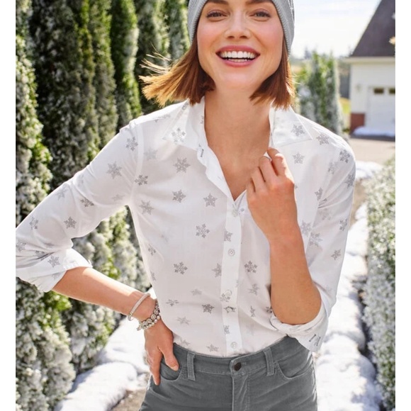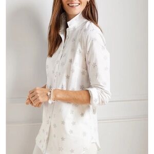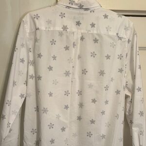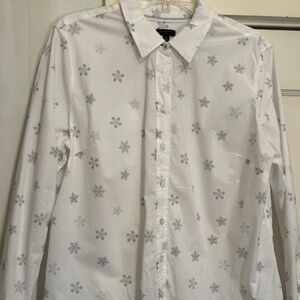 Like new Talbot’s white and silver snowflake button down shirt top blouse