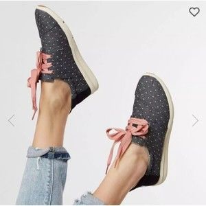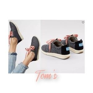Like New Tom's Sz6.5 Lace Up Blue Canvas Del Rey Polka Dot Sneaker