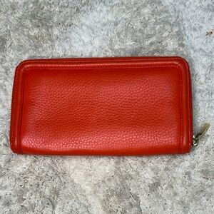 Like New Tory Burch Orange Amanda Continental Leather Zip Wallet