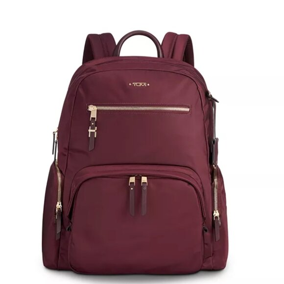 Like New Tumi Voyageur Carson Backpack, Burgundy & Gold