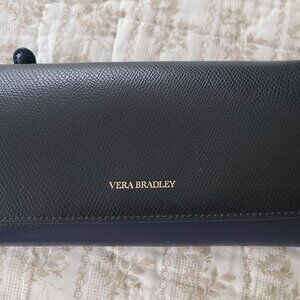 Like New Vera Bradley Vegan Wallet Blue Black Fabric inside Clutch style