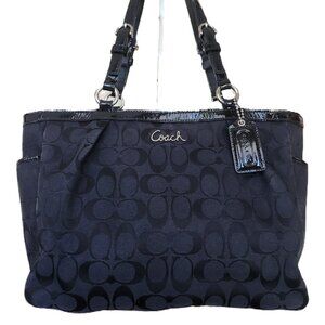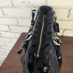 C122 12"x10"x3" Like New Coach Signature Black Shoulder Bag Purse
