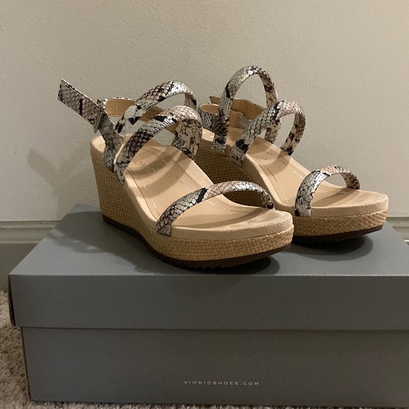 Perfect condition Vionic Kora Raf Boa Met Wedge. Beautiful Silver snake skin straps. I think I wore these twice. Size 7, comes with the box.