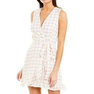 Like New WAYF Sleeveless Wrap White & Red Windowpane Pattern Mini Dress Size Small