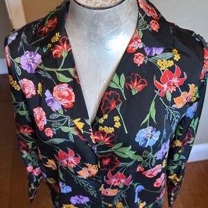 Like New Who What Wear Women’s Floral Button Down Blouse cuff leopard pr…