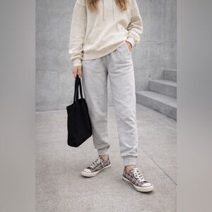 Classic Converse All Star high-top sneakers in gray with white accents. Iconic logo on the side.