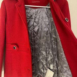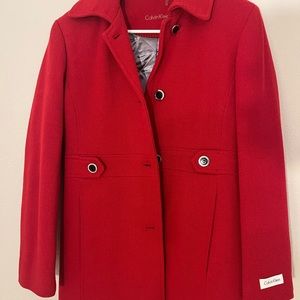 Excellent Condition…Red “Calvin Klein” Pea Coat super warm. This coat is very classy and elevates your outfit. Like new~worn twice before growth spurt.
