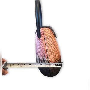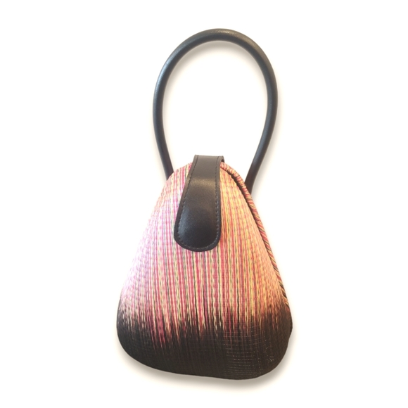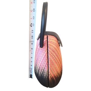 It has a brown fabric lining inside with 2 open pockets inside and a zipper pocket on the other side