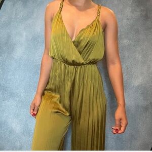 Like New |•ZARA•| Green Accordion Jumpsuit Size XS 0-2