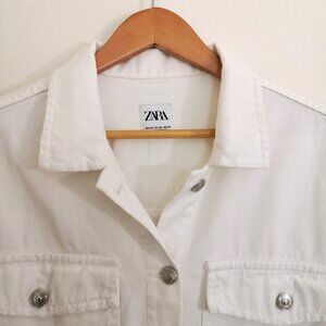 Like New Zara Oversized Cropped Raw Hem Denim Jacket White Size XS