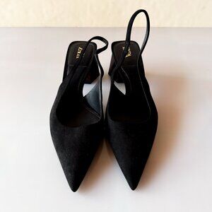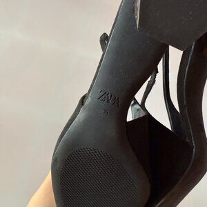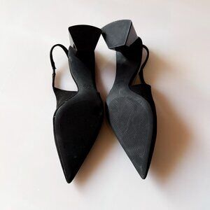 Like New - Zara Womens 39 Black Velvet Block Heel Slingback Pointed Toe