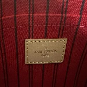 Genuine Louis Vuitton**Like new! No stains, or any signs of wear. 2023* LV Neverfull pochette with red interior can be worn as a clutch, wristlet or makeup bag❤️. Ive added receipts from my never full mm purchase