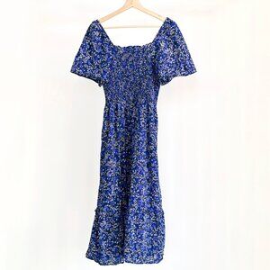 Like New-Draper James Blue Floral Smocked Midi Dress size M