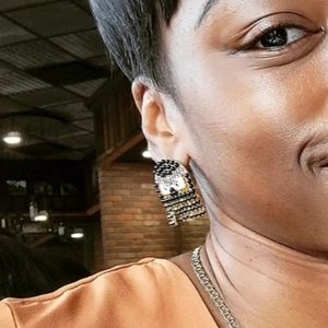Pac-Man like character Rhinestone Earrings Dangling bottom Gold, Black, White, Amber