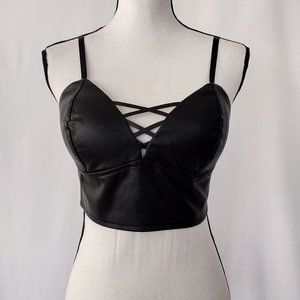 Like an Angel Black Vegan Leather Bustier Crop Top