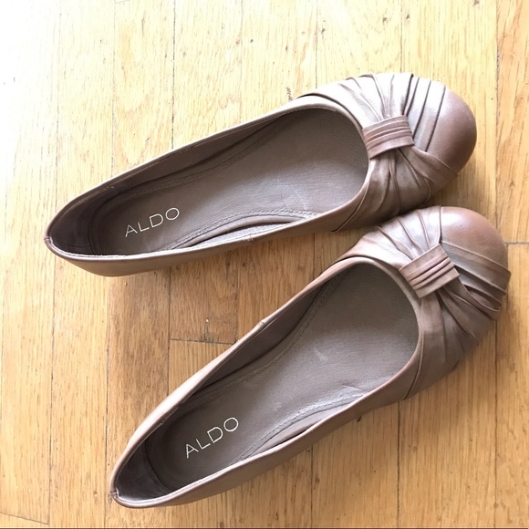 Like new condition tan flats from Aldo. Minimal heel with a hard sole. I normally wear 8.5US and these fit well. Great for the office or business casual look.