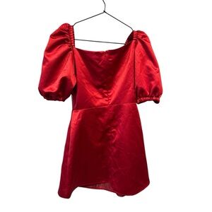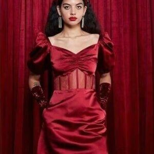 valentine's day, christmas, wedding guest, Holiday, satin, mini, puff sleeves, sexy, corset, sheer midriff, party