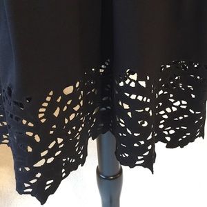 Like new! BCBGMaxAzria Career Skirt...lovely A-line skirt with 3 pleats front and back...welt front pockets...hidden side zipper...fully lined...eyelet detail at hem...Medium weight jersey knit in rayon/nylon/spandex blend...dry clean...length 21.5", waist approx 15.5" across. Size 6. Retail $109