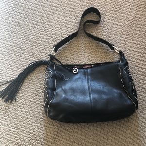 Like new, Brighton shoulder bag. Artistically detailed with studded embellishments. Notice fancy leather tassel!