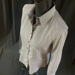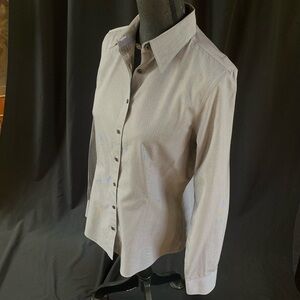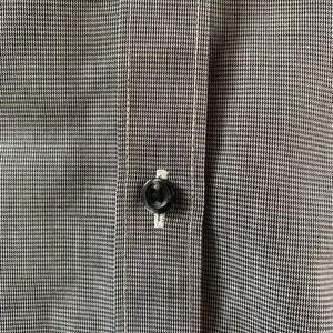 Micro houndstooth tailored shirt in black and white. Made in Thailand for Brooks Brothers. 100% cotton, machine washable. Size 10.