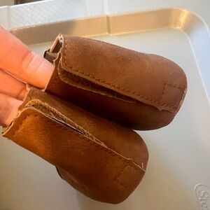 Adorable brown baby shoes. Soft and comfortable for little feet.