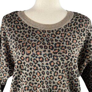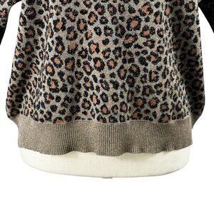 This stunning sweater from By Anthropologie is a wardrobe standout! Featuring an allover leopard print with metallic flecks woven throughout, it catches the light beautifully for a subtle, sophisticated sparkle. The three-quarter length dropped sleeves and ribbed trim add a touch of effortless style to this versatile piece, perfect for layering or wearing on its own.